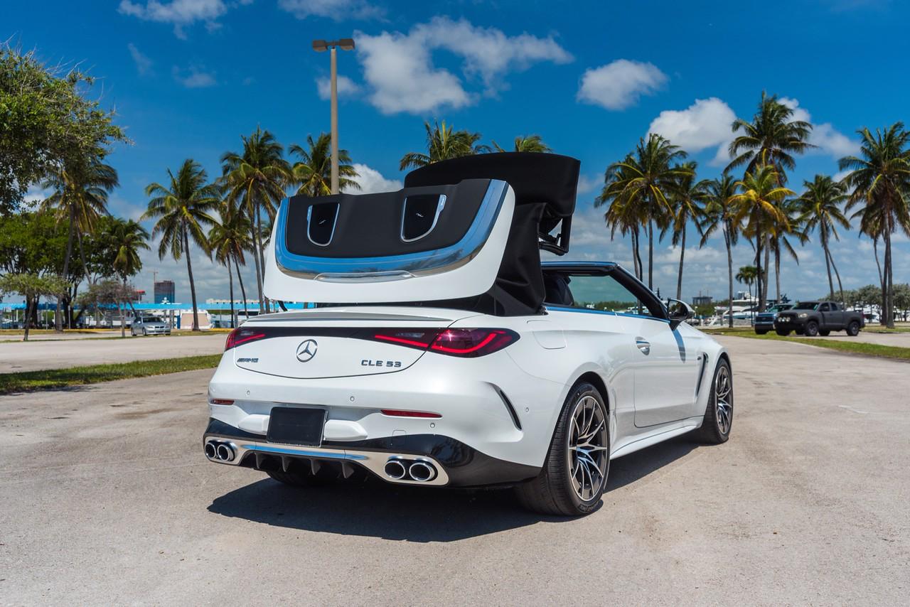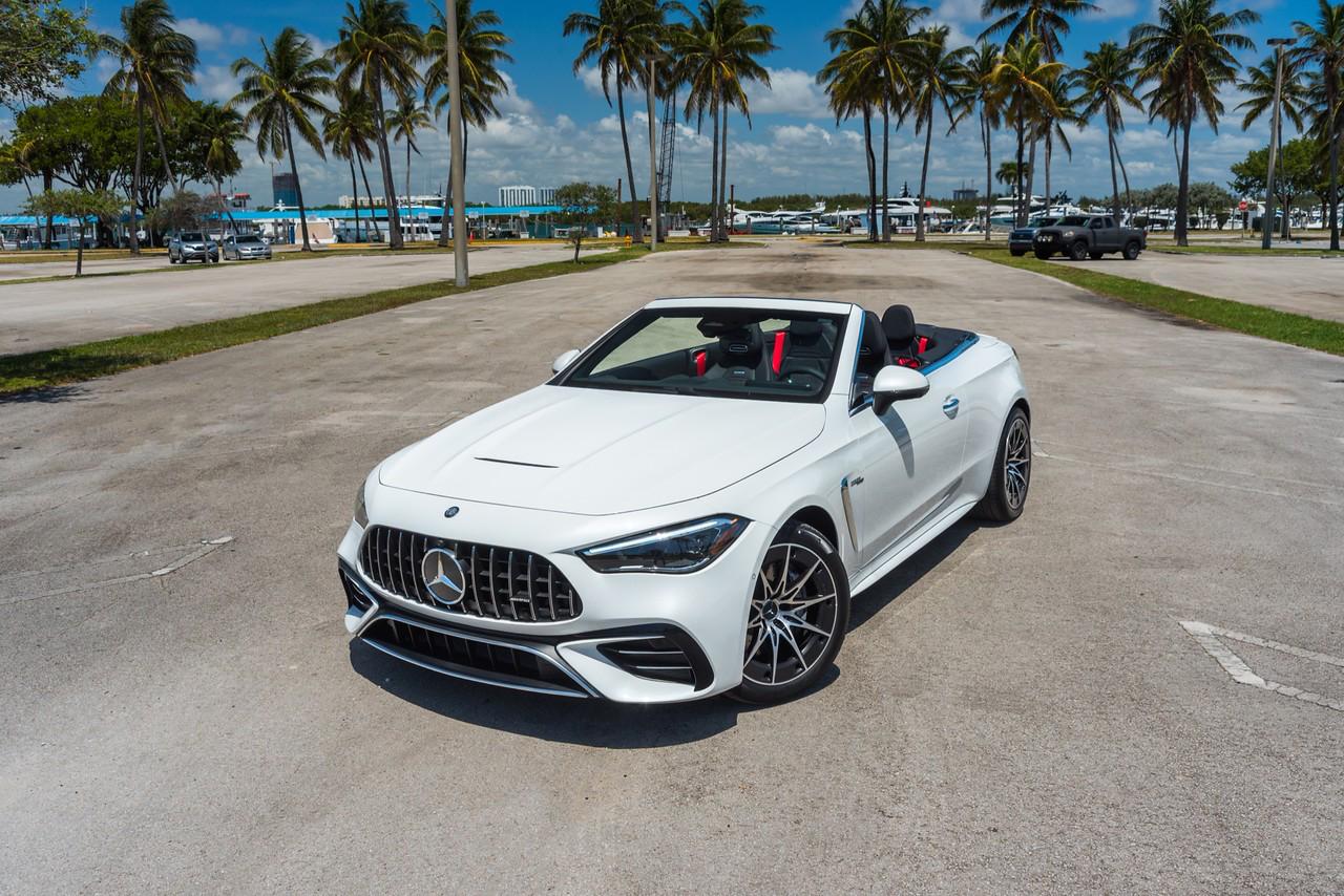 Alugue o Mercedes-Benz CLE 53 Convertible AMG Branco em Miami e experimente luxo, potência e elegância em um conversível estiloso.